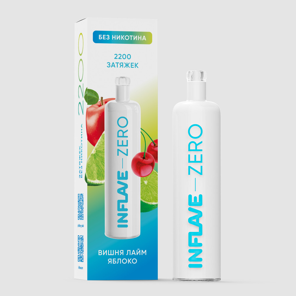 Электронная сигарета Inflave Zero 2200 затяжек Вишня Лайм Яблоко со вкусом насыщенного вишневого сока, кисло-сладкой мякоти зеленого яблока и свежей цитрусовой нотки лайма.